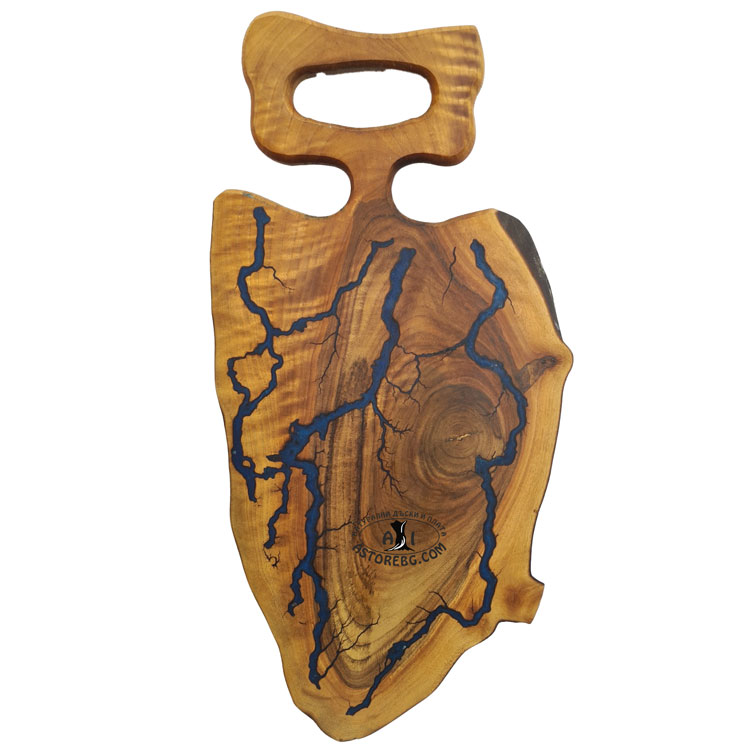 Тези дъски са истинско произведение на изкуството! Ръчната изработка я прави уникална и неповторима!Дъската е лека и изключително удобна. С топлината на дървото и елегантността на смолата, придават уют и топлина във всеки дом. С нея със сигурност ще очаровате вас и вашите гости или би била страхотен подарък за скъп човек!Всичко поднесено на нея става по-специално и вълшебно!Обработката с ленено масло и карнауба я предпазват и допринасят за дълга употреба.